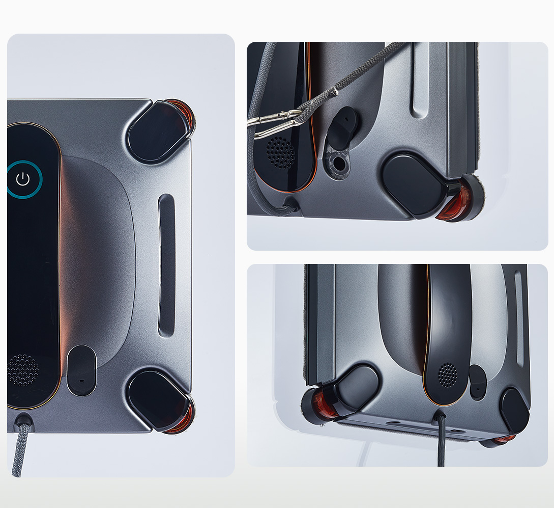 Der Roboterarm deckt den gesamten Boden zu 100 % ab und reinigt ihn mit einem Mopp in U-Form. Er verfügt über die erste Anti-Fall-Technologie für Nasswischen und eine selbst entwickelte intelligente Kompensationstechnologie mit elastischer Dreipunkt-Abstützung*, die auch bei Kontakt mit Wasser und Staub rutschfest ist.